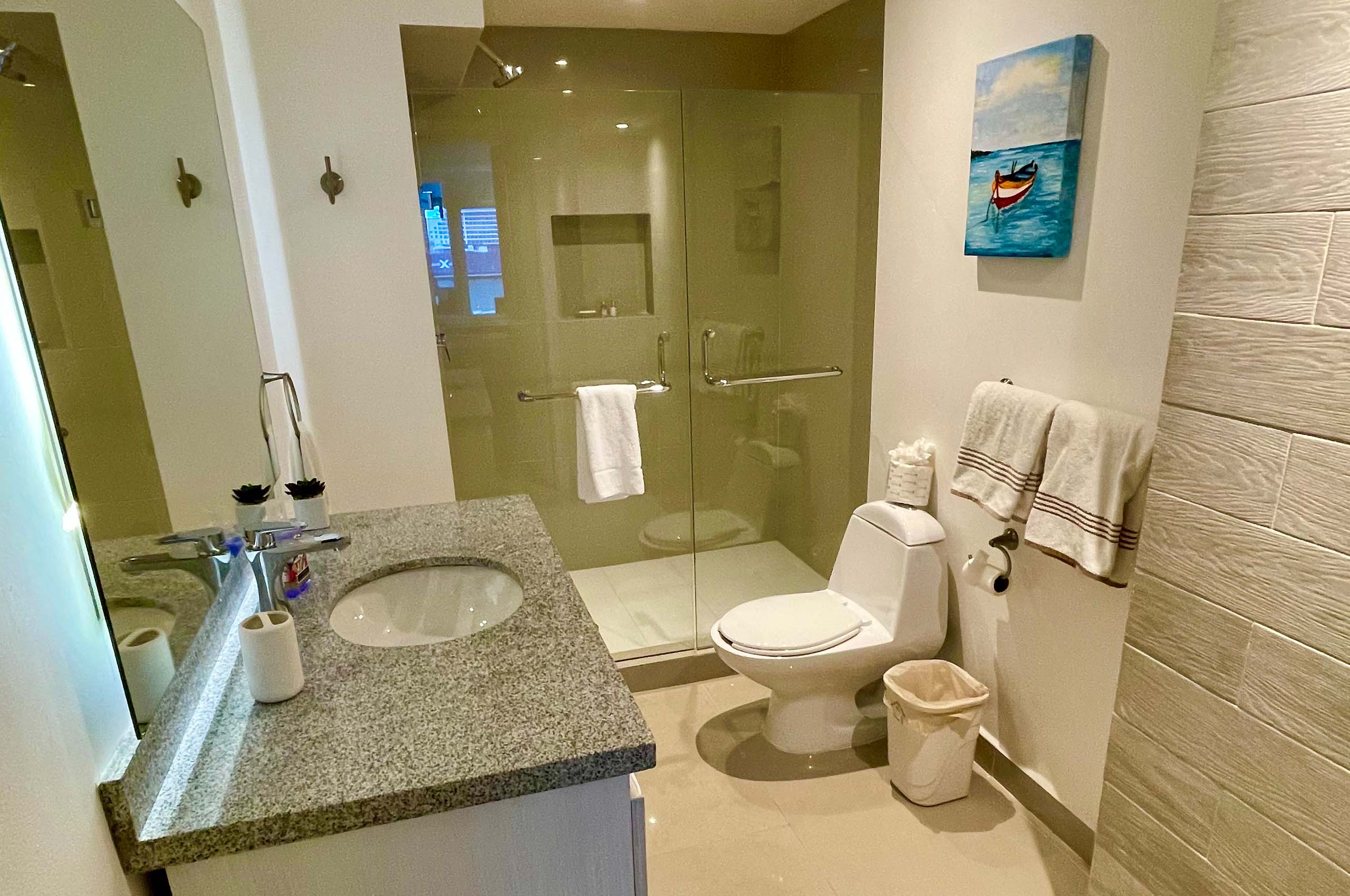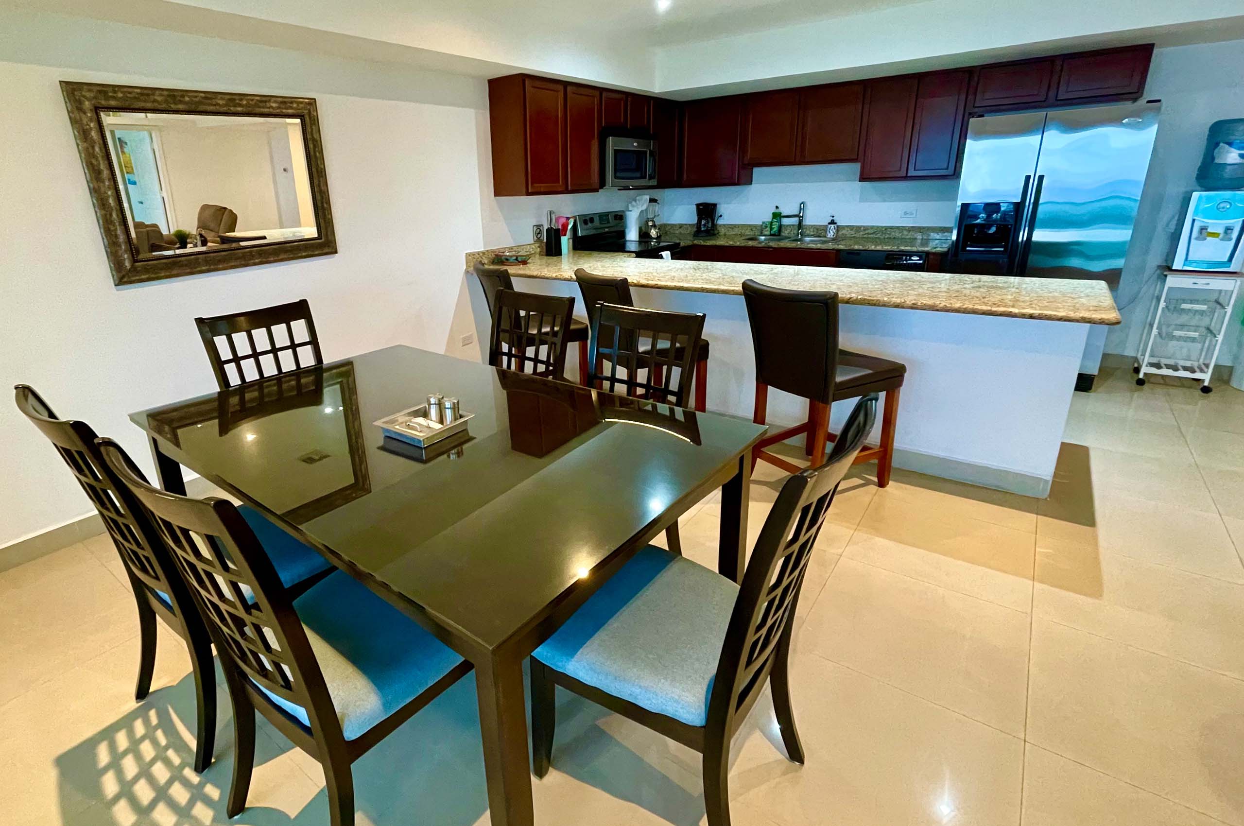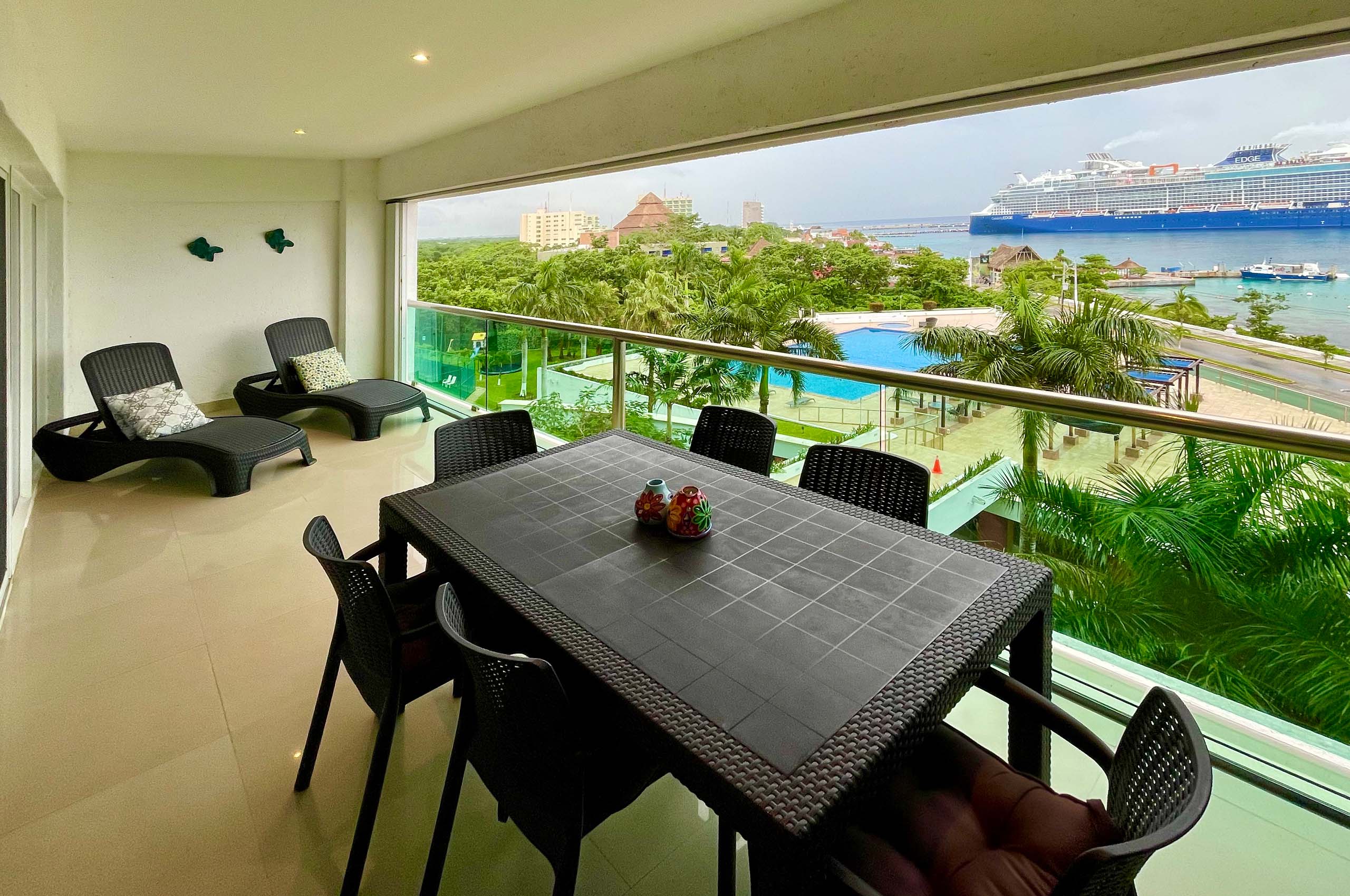Casa Cecilia is a beautiful 2 bedroom and 2.5 bath condo located at the prestigious complex of El Palmar. You will have the best mornings and sunsets from its amazing balcony. Just 2 miles south od downtown Cozumel you will be able to walk to almost every place and yet will be just 5 minutes from the marina to go out on your favorite boat trip.