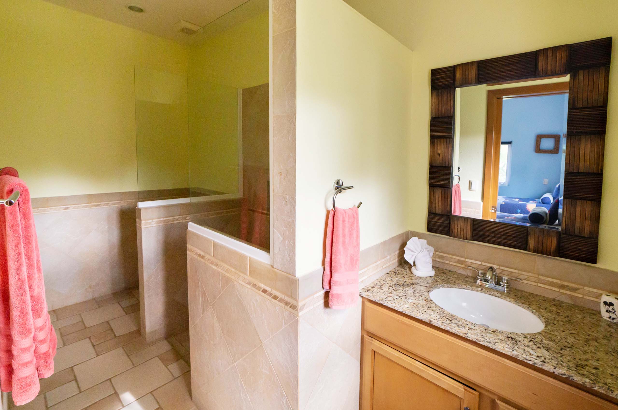 Casa Dana sits at the back of the property to provide maximum privacy for your and your guests. The state of the art entertainment system with Satellite TV will keep you entertained indoors, while the Infinity pool, private beach and pier will keep you entertained outdoors! This house sleeps 8 comfortably, but can accommodate up to 10 if needed. There is a king bed on the 3rd floor, a queen bed, 2 twin beds and a double futon on the 2nd floor and a queen sleeper sofa on the 1st floor. End your days atop the 3rd floor on the beautiful terrace that looks out over the Caribbean and jungle, toasting the sunset and another great day in paradise!